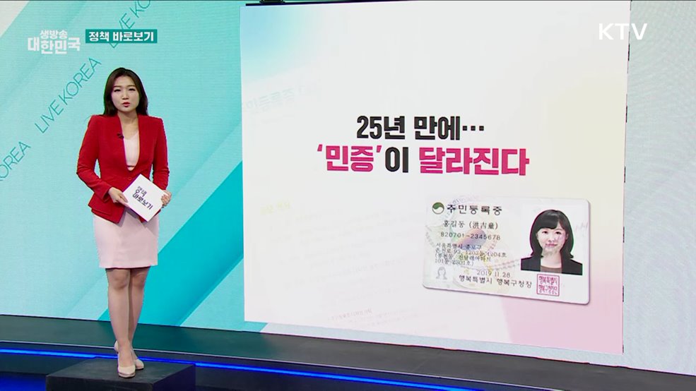 최유경 앵커>계속해서 바로 볼 정책 키워드 짚어봅니다.먼저 주민등록증 디자인 변경을 둘러싼 언론보도 짚어보고요.이어서 임금체불 대지급금 관련한 기사 바로봅니다.마지막으로 '실손24' 관련한 궁금증 짚어봅니다.1. 주민등록증 디자인 변경 '세금 축내기'?첫 소식입니다.25년 만에 주민등록증이 새 옷을 입습니다.정부가 민증 디자인 개선을 추진하기 위해 다음 달...