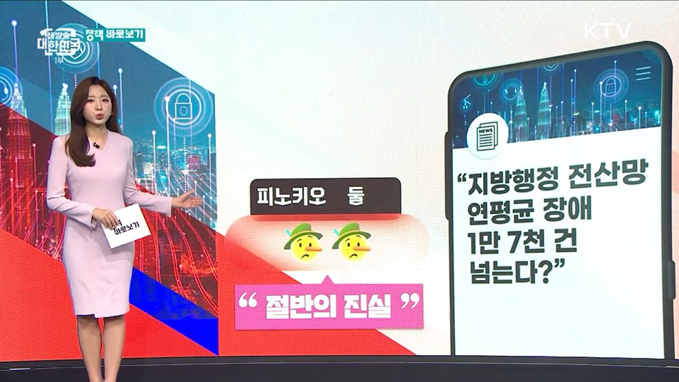 심수현 정책캐스터>최근 공무원 전용 행정전산망인 '시도 새올행정 시스템'과 온라인 민원 서비스인 '정부24'가 마비되면서 전국적으로 혼란이 일었는데요.장애 원인은 규명됐지만 해당 사태와 관련해 후속 보도가 쏟아지고 있습니다.오늘은 행정전산망 마비 사태 관련 언론보도 포함해 두가지 이슈, '피노키오 지수'를 통해 살펴봅니다.'피노키오 지수'는 워싱턴포스트에서...