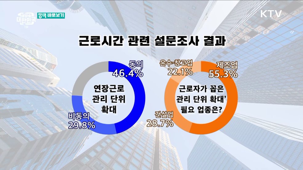 심수현 정책캐스터>지난 3월 정부에서는 연장근로 관리 단위를 확대하는 내용의 근로시간 개편안을 내놨었죠.장시간 노동이 불가피해질 거라는 비판이 이어지자 정부에서는 국민여론 수렴 절차를 진행했는데요.최근 그 결과가 나왔습니다.오늘은 해당 조사 관련 언론보도 포함해 총 3가지 내용 짚어봅니다.1. 일부 업종 '주 52시간' 완화?... "확정된 바 없어"최근 ...