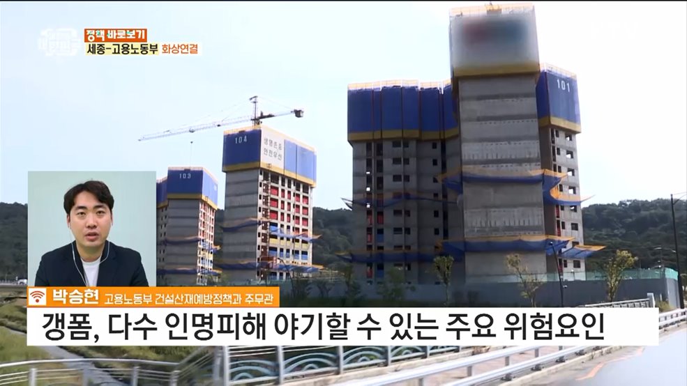 김용민 앵커>지난 6일 충북 청주의 한 아파트 신축공사 현장에서 베트남 국적의 이주 노동자 2명이 25층 높이에서 떨어져 숨졌습니다.현장에서는 공기 단축을 위한 '갱폼 선 해체' 관행 때문이라는 지적이 있습니다.관련 내용 고용노동부 건설산재예방정책과 박승현 주무관 연결해 들어보겠습니다.안녕하세요.(출연: 박승현 / 고용노동부 건설산재예방정책과 주무관)김용민...
