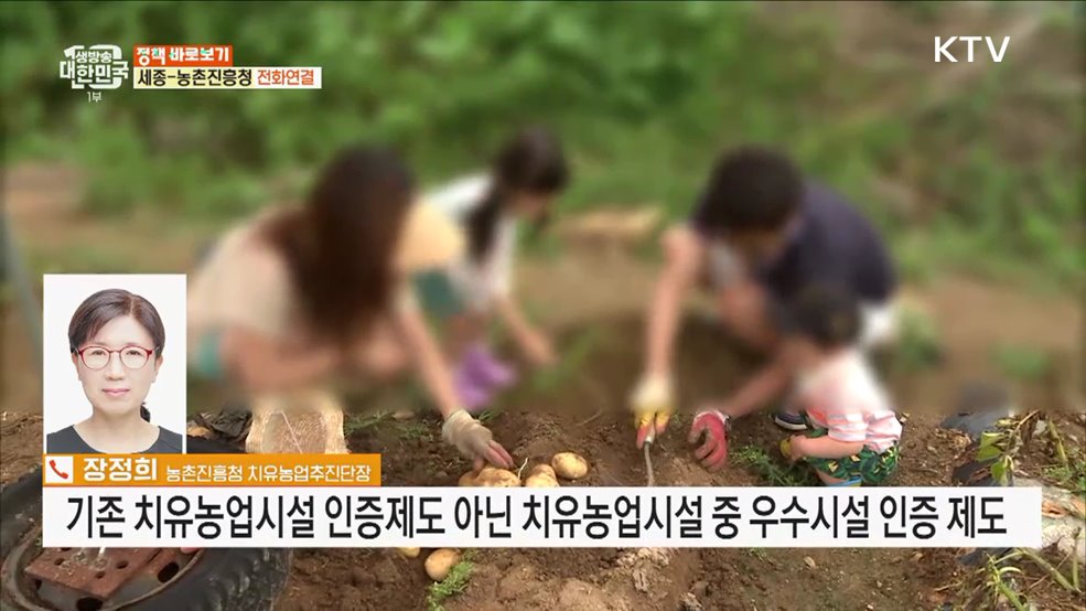 김용민 앵커>치유농업사 자격증 시험이나 우수 치유농업시설 인증제도 설립 등 보여주기에만 급급하고 치유농업을 시행하는 주체인 농민과 농업 현장에 대한 고민은 없다는 언론보도가 나왔습니다.이같은 내용이 정말 사실인지 농촌진흥청 치유농업추진단 장정희 단장 연결해서 자세한 얘기 나눠보겠습니다.단장님, 안녕하세요.(출연: 장정희 / 농촌진흥청 치유농업추진단 단장)김...