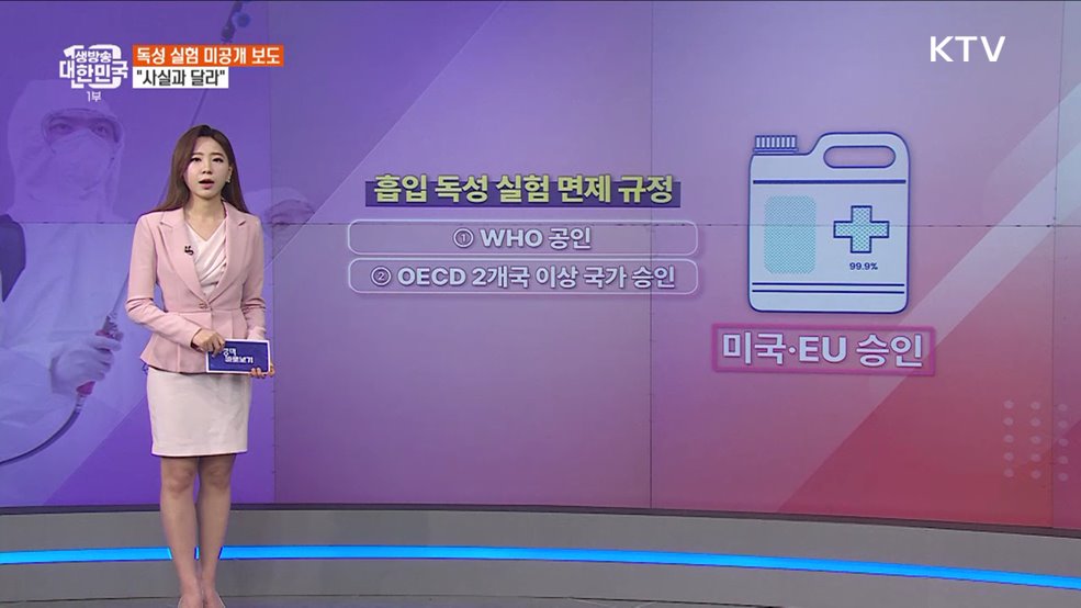 심수현 정책캐스터>언론 속 정책에 대한 오해부터 생활 속 궁금한 정책까지 자세히 짚어드립니다.정책 바로보기, 심수현입니다.1. 환경부, ‘코로나 소독제’ 독성 실험 숨겼다?코로나 사태가 지속되는 동안 예전과 비교해 기하급수적으로 사용이 늘어난 물품이 몇 가지 있죠.소독약도 그 중 하나인데요.그런데 최근 일부 언론을 통해 코로나19 방역용 소독약에 흡입 시 ...