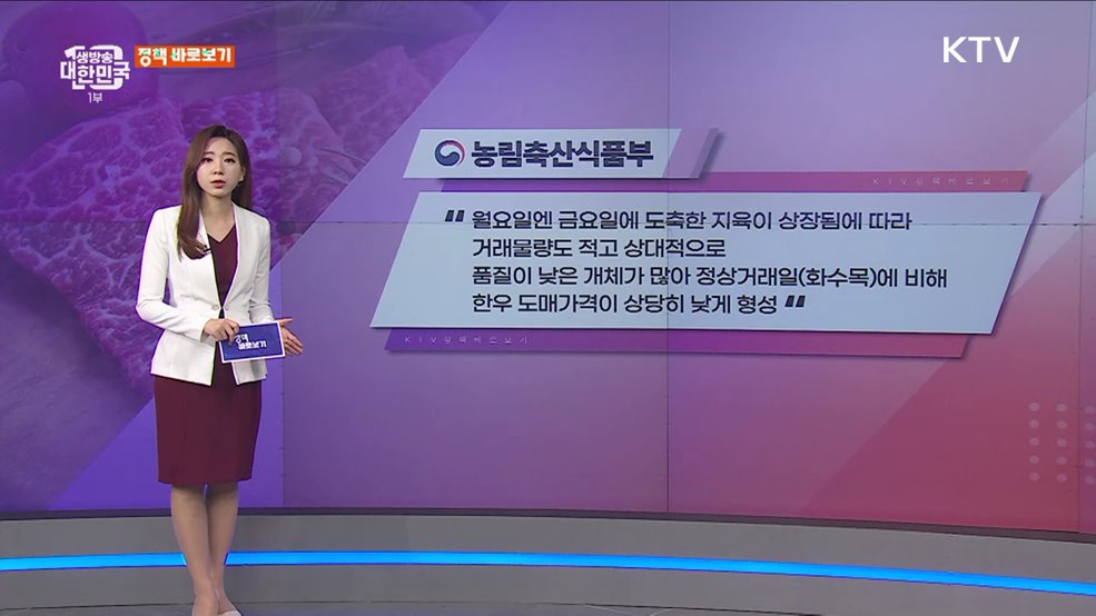 심수현 정책캐스터>언론 속 정책에 대한 오해부터 생활 속 궁금한 정책까지 자세히 짚어드립니다.정책바로보기, 심수현입니다.1. 구제역 확산으로 ‘한우 도매가격’ 대폭 상승했다?소나 돼지, 염소 등의 우제류에서 발생하는 구제역이 2019년 1월 이후 4년 4개월 만에 국내에 발생했습니다.이에 일부 언론을 중심으로 한우 도매가격이 대폭 상승하는 등 수급 불안이 ...