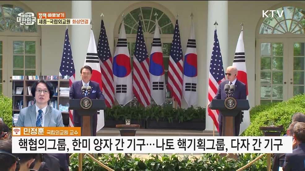 김용민 앵커>네, 이번 한미정상회담의 최대 성과로 꼽는 것은 바로 워싱턴 선언에 명시된 ‘핵협의그룹’ 창설인데요.그러나 이번에 만들어진 한미 핵협의그룹이 나토식 핵공유와 비교했을 때 약한 것이 아니냐는 내용의 언론보도가 나왔습니다.한미 핵협의그룹이 나토식 핵공유 체제와 어떻게 다른지, 민정훈 국립외교원 교수 연결해서 자세한 내용 얘기 나눠보겠습니다.교수님,...