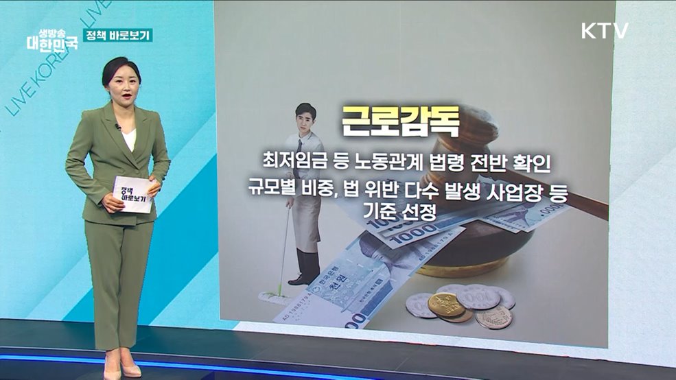 김유영 앵커>언론 속 정책에 대한 오해부터 생활 속 궁금한 정책까지 짚어보는 정책 바로보기입니다.최저임금을 위반한 사업장에 대한 정부의 근로감독이 제대로 이루어지지 않고 있다는 지적이 나왔습니다.내용 확인해보고요. 7월부터 달라지는 정책달력, 살펴봅니다.1. 고용부 "사각지대 없이 내실 있는 근로감독 추진"최근 언론 보도에서 '최저임금 위반 사업장, 5인 ...