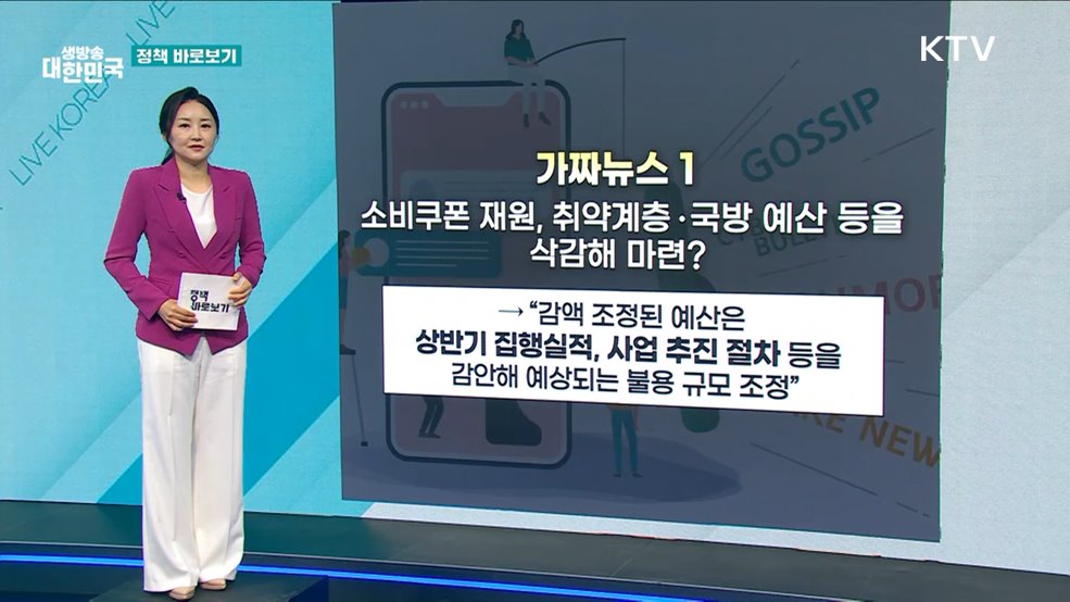 김유영 앵커>언론 속 정책에 대한 오해부터 생활 속 궁금한 정책까지 짚어보는 정책 바로보기입니다.필수예산을 삭감해 민생회복 소비쿠폰의 재원을 마련했다는 지적이 있었습니다.사실 확인해보고요. 우리 마을의 숨겨져 있는 소중한 자연유산을 추천하는 방법, 살펴봅니다.1. 정부 "필수예산 삭감해 소비쿠폰 재원 마련? 전혀 사실 아냐"최근 언론 보도에서 '소비쿠폰 재...