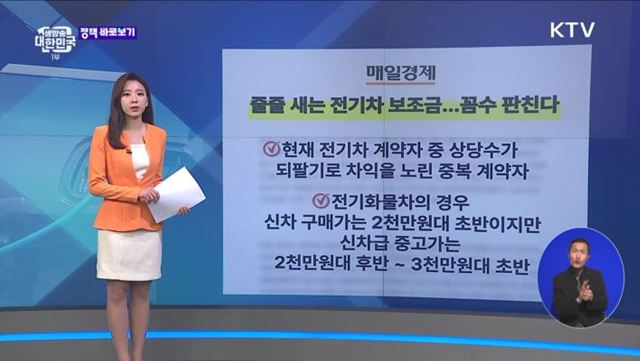 최대환 앵커> 언론 속 정책에 대한 오해부터 생활 속 궁금한 정책까지 자세히 짚어드리는 '정책 바로보기' 시간입니다. 심수현 정책캐스터 전해주시죠. 심수현 정책캐스터> 1. 전기차 보조금 활용한 '되팔기 거래' 속출? 친환경은 전 세계의 가장 큰 관심사 중 하나라 해도 과언이 아닌데요. 특히 우리나라에서는 무공해차로의 적극적인 변환을 추진하기...
