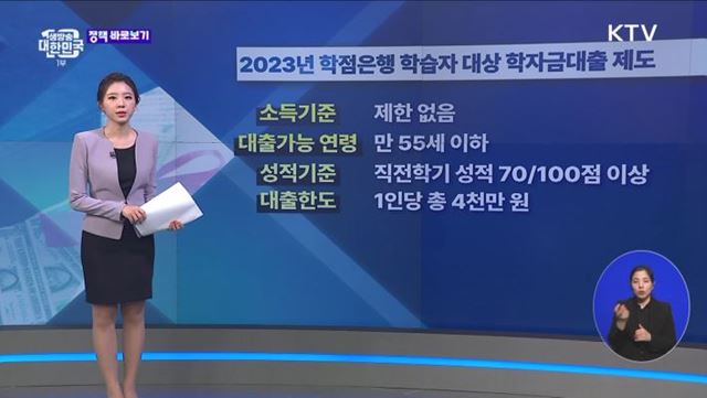 최대환 앵커> 언론 속 정책에 대한 오해부터 생활 속 궁금한 정책까지 자세히 짚어드리는 '정책 바로보기' 시간입니다. 심수현 정책캐스터 전해주시죠. 심수현 정책캐스터> 1. 학점은행제 학생도 학자금 대출 가능···연령제한은? 기존에는 대학생만 지원받을 수 있었던 학자금대출이 2023년 1학기부터 학점은행제 학습자에게까지 확대됩니다. 1인당 총...