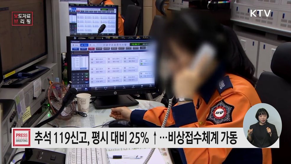임보라 기자>올 추석, 연휴가 긴 만큼 안전에 각별히 유의하시기 바랍니다.최근 5년간 추석 연휴 기간 119신고는 하루 평균 4만여 건으로, 평시 대비 25% 증가했는데요.소방청이 오는 26일부터 다음 달 10일까지 '추석 명절 119상황관리 대책'을 추진합니다.우선, 신고 폭주로 인한 접수 지연을 예방하기 위해 다음 달 2일까지 비상용 보조접수대의 가동상...