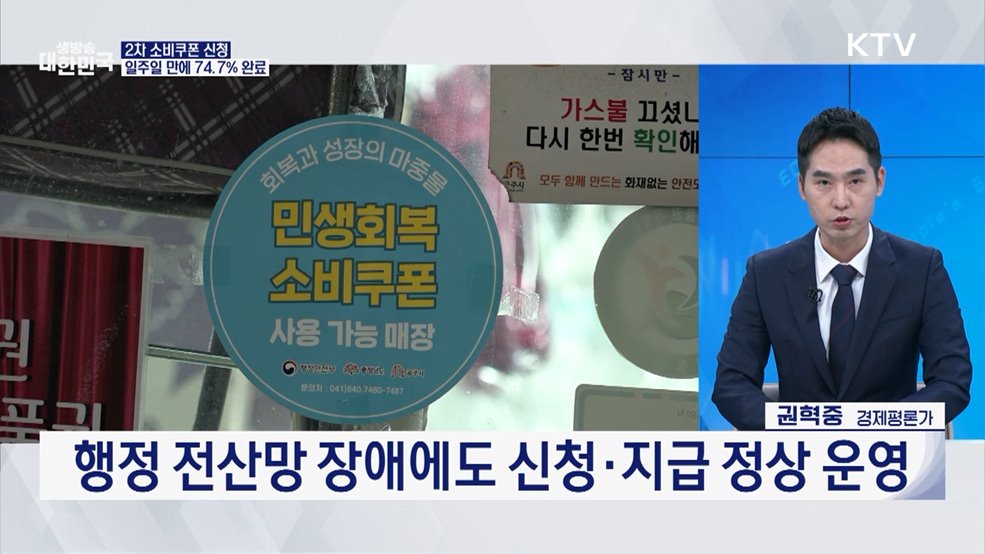 신경은 앵커>2차 소비쿠폰의 신청 첫날 640만 명이 몰리는 등 관심이 상당한 것으로 나타났는데요.추석 장바구니 부담을 덜어줄 수 있을지, 관련 내용 권혁중 경제평론가와 함께 살펴보겠습니다.(출연: 권혁중 / 경제평론가)Q. 2차 민생회복 소비쿠폰 신청 현황은?Q. 2차 소비쿠폰 지급, 소비심리 영향은?