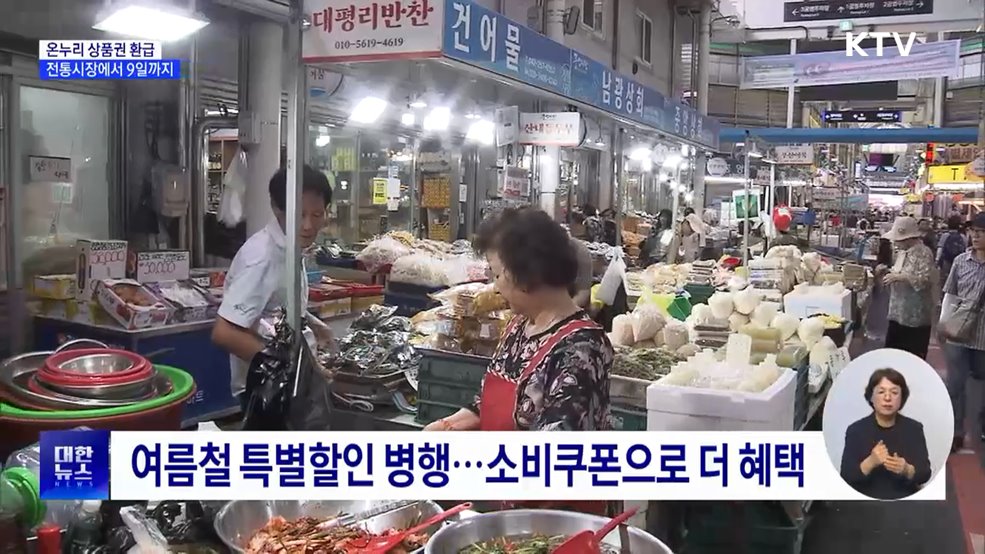 모지안 앵커>요즘 식비 부담 만만치 않으시죠.여름철 온누리상품권 환급행사가 진행되고 있습니다.전통시장에서 국산 농축산물을 사면, 최대 2만 원을 돌려받을 수 있는데요.최유경 기자가 알려드립니다.최유경 기자>(장소: 4일 오전, 대전 정원시장)몇몇 가게는 열리지 않은 이른 시간.시장은 벌써 북새통입니다.온누리상품권 환급행사 소식에, 사람들이 몰린 겁니다.인터...