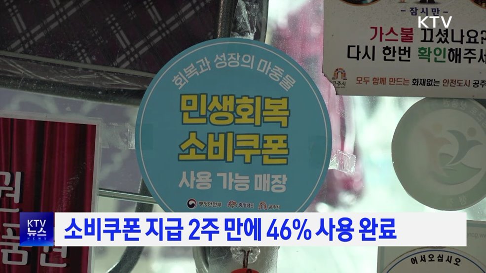 모지안 앵커>민생회복 소비쿠폰이 지급된 지 2주 만에 절반 가까운 금액이 사용됐습니다.특히 음식점과 마트 등 생활 밀착 업종의 매출액이 증가한 것으로 나타났습니다.윤현석 기자의 보도입니다.윤현석 기자>지난달 21일부터 지급된 민생회복 소비쿠폰.행정안전부에 따르면 지난 3일까지 지급된 소비쿠폰 5조7천679억 원 중 2조6천518억 원이 사용된 것으로 집계됐...