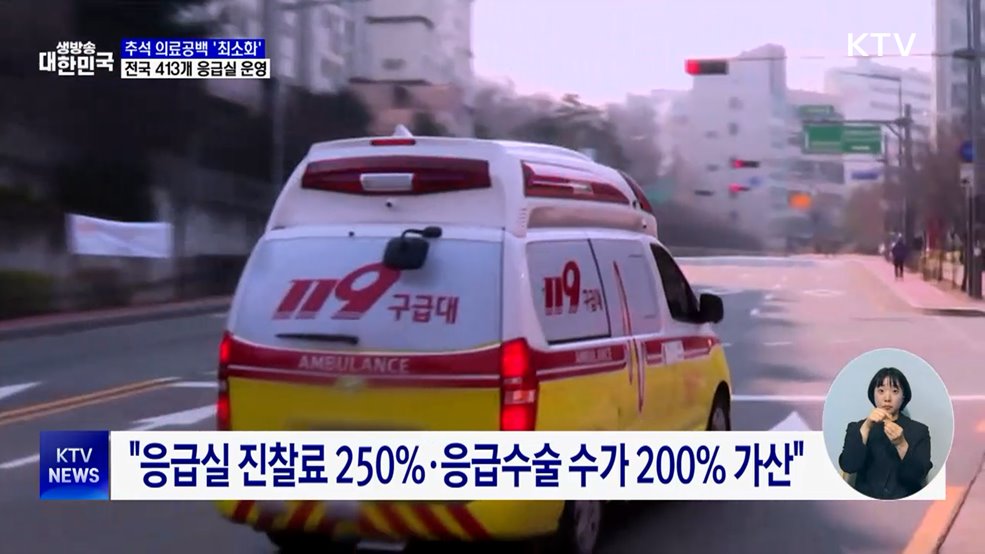 신경은 앵커>추석 연휴 기간 '응급 의료 특별 대책반'이 가동됩니다.전국의 413개 응급실이 24시간 운영됩니다.정유림 기자입니다.정유림 기자>의사 집단행동 중앙재난안전대책본부 회의(장소: 1일, 정부서울청사)정은경 보건복지부 장관이 회의에서 연휴 기간 비상진료체계 유지에 최선을 다하겠다고 강조했습니다.전공의가 지난달 일부 복귀하긴 했지만, 응급의료체계가 ...