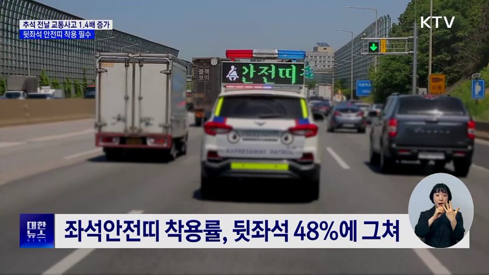 추석 전날 교통사고 1.4배 증가···안전띠 착용 필수