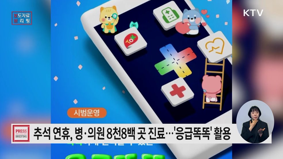 임보라 기자>국정을 더 촘촘히 살펴봅니다.보도자료 브리핑입니다.추석 연휴, 교통 상황이나 병원·약국 정보가 궁금하다면?국민콜110을 통해 24시간 안내와 상담을 받을 수 있습니다!국번 없이 110번만 누르면 고속도로나 국도 정체구간, 대중교통 연장 운행 시간 등 교통정보를 알 수 있고요.가까운 진료 가능 병원, 당번 약국 등 의료정보도 안내받을 수 있는데요...