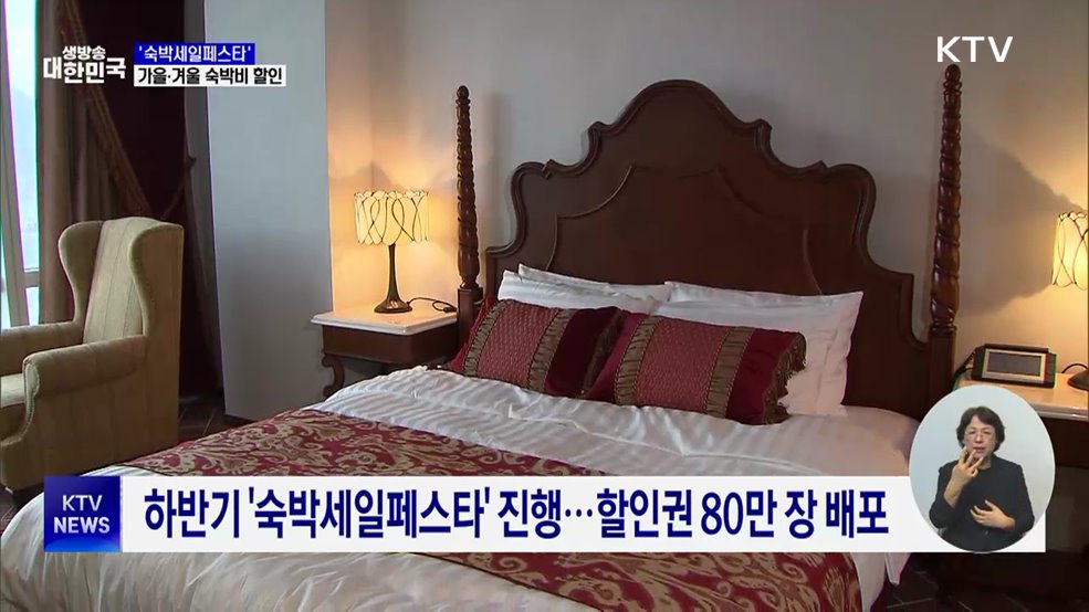 임보라 앵커>정부가 다가오는 가을과 겨울 국내 여행의 수요를 높이고자 하반기 '숙박세일 페스타'를 시작합니다.비수도권 숙박시설은 최대 3만 원, 특별재난지역 숙박시설은 최대 5만 원까지 할인받을 수 있습니다.최다희 기자입니다.최다희 기자>초록 대숲이 하늘 높이 치솟은 담양의 죽녹원부터 깎아지른 절벽과 굽이치는 기암괴석을 볼 수 있는 청송 주왕산까지.선선한 ...