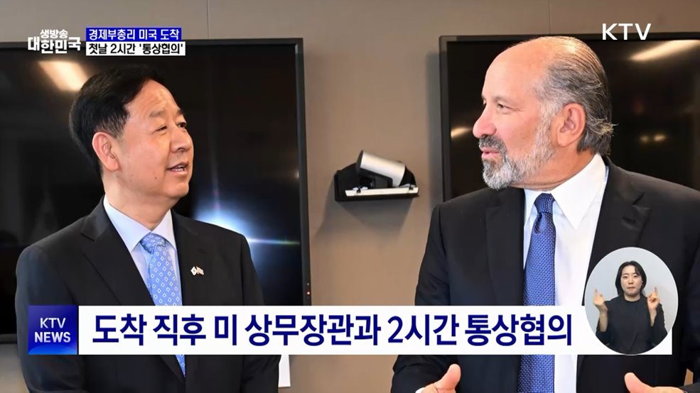 임보라 앵커>8월 1일 미국의 관세 부과를 앞두고, 구윤철 경제부총리가 통상협의를 위해 미국에 도착했습니다.구 부총리는 도착하자마자 하워드 러트닉 미 상무장관과 2시간 통상협의를 하고, 본격적인 협상에 들어갔습니다.문기혁 기자입니다.문기혁 기자>구윤철 경제부총리 겸 기획재정부 장관이 미국 워싱턴DC에 도착했습니다.8월 1일 미국의 25% 상호관세 부과를 앞...