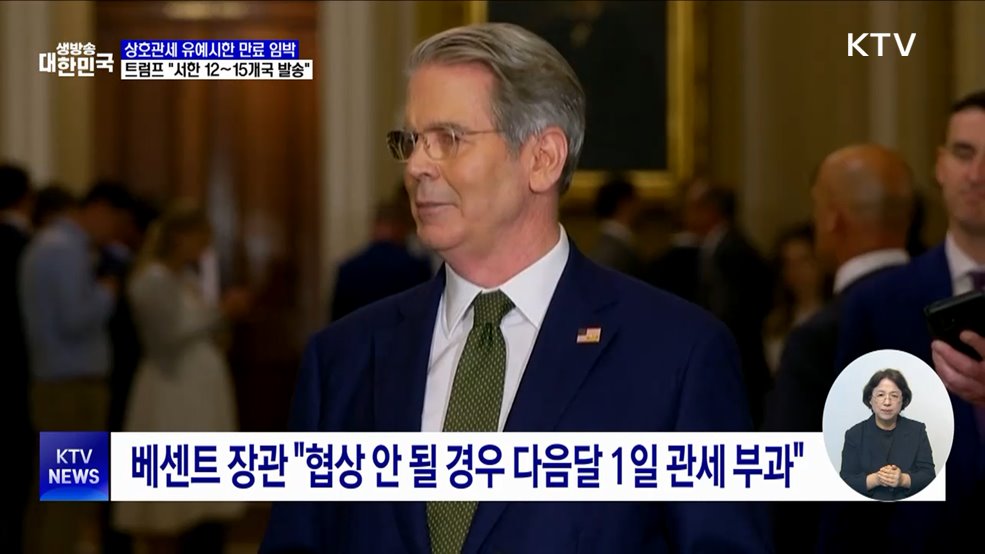 임보라 앵커>트럼프 대통령이 관세 서한 발송 대상이 12개국에서 15개국이 될 수 있다고 밝혔습니다.대부분의 국가와는 오는 9일까지 협상을 마무리하겠다고 강조했습니다.신국진 기자입니다.신국진 기자>트럼프 대통령이 상호관세 유예 만료 시한을 앞두고, 현지시간으로 6일 서한을 발송을 언급하며 협상 압박에 나섰습니다.특히, 무역 상대국 12개국 또는 15개국에 ...