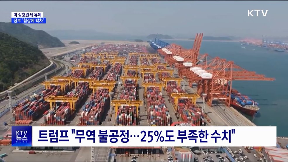 김경호 앵커>앞서 뉴스 리포트에서 보신 것처럼 미국의 상호관세 부과에서 한국이 3주 정도 시간을 벌게 됐습니다.우리 입장에선 귀중한 시간을 얻은 셈인데요.뉴스룸에 나와있는 취재기자와 이야기 나눠보겠습니다.정유림 기자, 트럼프 대통령 통보 내용부터 간단히 짚고 넘어가보죠.당초 9일부터 적용 예정이던 25% 상호관세율은 유지하고 부과 시점을 미루겠다는 거죠?정...