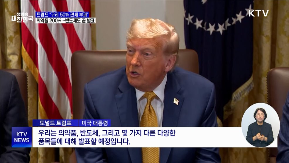 임보라 앵커>14개국에 상호 관세 서한을 보냈던 트럼프 미국 대통령이 품목별 관세를 늘리겠다고 밝혔습니다.구리에는 50%, 의약품은 200%를 예고했고, 반도체 관세도 이달 발표하겠다고 강조했습니다.신국진 기자입니다.신국진 기자>한국을 비롯해 14개 국가에 상호관세 서한을 보낸 트럼프 미국 대통령이 품목 관세를 예고했습니다.미국으로 수출하는 구리 제품에 5...