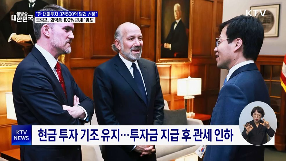임보라 앵커>트럼프 미국 대통령이 한국의 대미 투자 금액 3천500억 달러는 '선불'이라고 언급했습니다.또한, 다음 달부터 미국 내 제약 생산 공장을 건설하지 않는 기업의 의약품에 대해 100% 관세를 부과한다고 밝혔습니다.신국진 기자입니다.신국진 기자>한미 간 무역협상의 세부 이행사항을 놓고, 협의가 진행되는 가운데 트럼프 대통령의 입장이 나왔습니다.트럼...