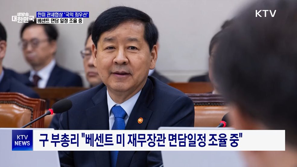 김용민 앵커>국회 국정감사에 출석한 구윤철 경제부총리가 대미관세 협상은 국익을 최우선으로 임하겠다고 밝혔습니다.김현지 앵커>특히, 오는 15일 스콧 베센트 미 재무장관을 만나는 일정을 조율하고 있다고 말했습니다.신국진 기자입니다.신국진 기자>구윤철 경제부총리가 국회 기획재정위원회 국정감사에 출석해 대외경제 여건 관리 방향을 설명했습니다.특히, 대미 관세 협...