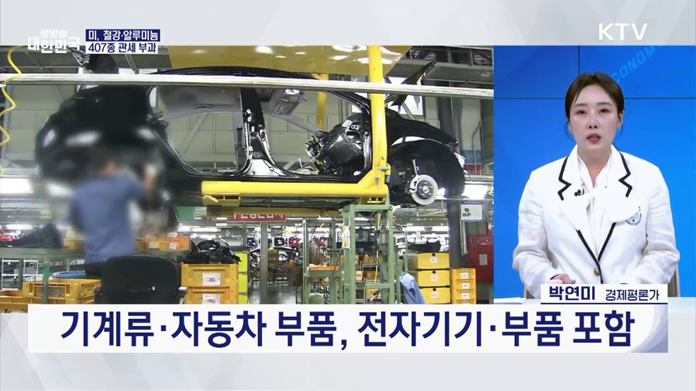 임보라 앵커>미국이 수입산 철강과 알루미늄에 부과하는 50% 품목 관세 적용 범위에 407종을 추가했습니다.국내 관련 산업 피해가 우려되는데요.박연미 경제평론가와 함께 짚어봅니다.(출연: 박연미 / 경제평론가)Q. 미 철강·알루미늄 품목 관세 확대는?Q. 관세 추가 확대 품목은?