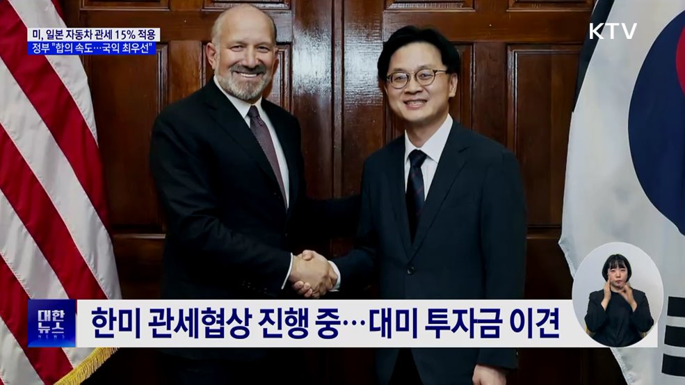 모지안 앵커>미국이 16일부터 일본산 자동차에 부과하는 관세를 15%로 인하합니다.미국과 후속협상을 이어가고 있는 정부는 일희일비하지 않고, 국익을 최우선으로 협상에 전념하겠다고 밝혔습니다.신국진 기자입니다.신국진 기자>트럼프 대통령은 지난 4월부터 무역확장법 232조를 근거로 자동차와 그 부품에 대한 관세를 25%로 인상했습니다.일본의 경우 그동안 기존 ...