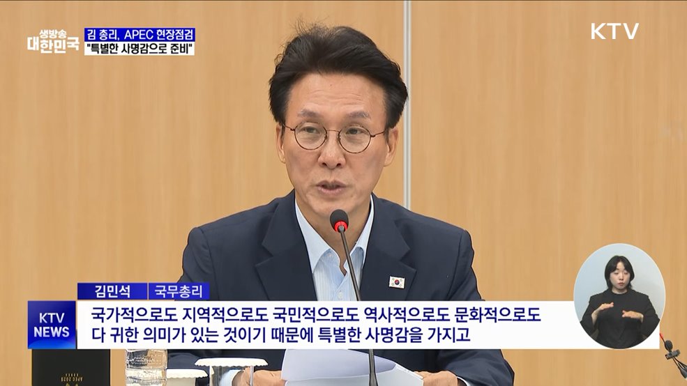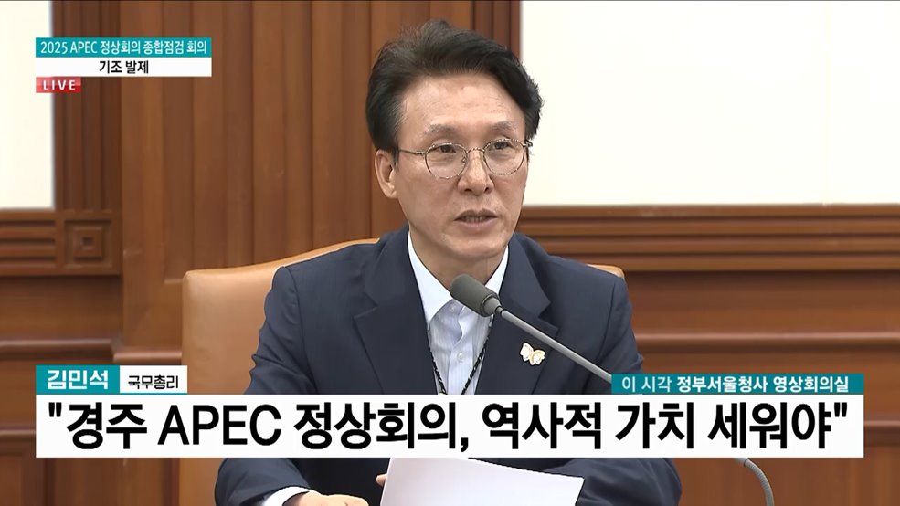 김용민 앵커>김민석 국무총리가 경주 APEC 정상회의 100일을 앞두고, 종합점검 회의를 주재했습니다.김현지 앵커>김 총리는 이번 APEC은 대한민국의 위상을 다시 한번 높이는 계기란 점을 강조했습니다.문기혁 기자입니다.문기혁 기자>오는 10월 31일부터 11월 1일까지 경북 경주에서 열리는 APEC 정상회의. 정확히 100일 앞으로 다가온 가운데, APE...