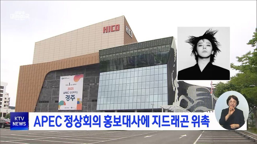 임보라 앵커>APEC 정상회의 준비기획단은 대한민국을 대표하는 아티스트 지드래곤을 2025 APEC 정상회의 홍보대사로 위촉한다고 밝혔습니다.준비기획단은 지드래곤이 창의성과 혁신의 상징으로 APEC이 지향하는 연결과 지속가능성의 가치를 국내외에 파급력 있게 전달할 수 있는 최적의 인물이라고 설명했습니다.준비기획단은 APEC 홍보영상 제작은 크리에이티브 스튜...