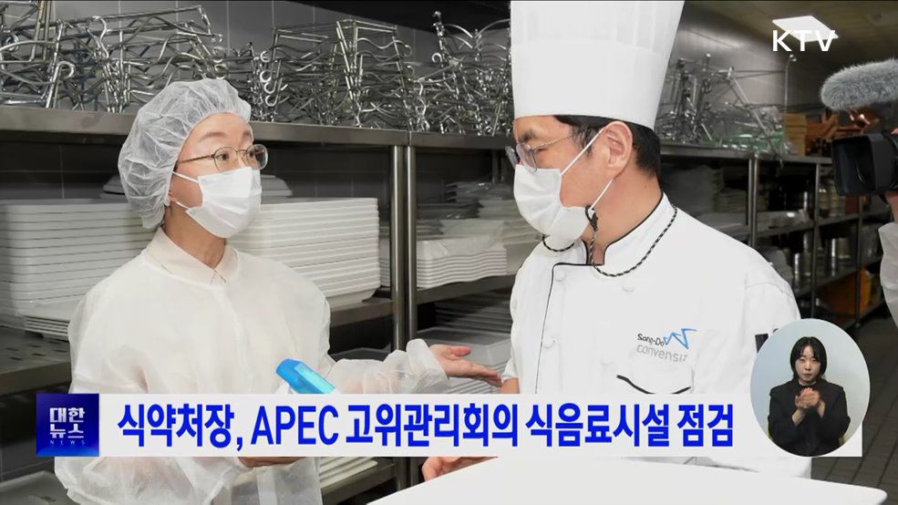 모지안 앵커>'APEC 제3차 고위관리회의'를 이틀 앞두고 오유경 식약처장이 오늘, 회의가 열리는 송도컨벤시아를 찾아 식음료시설 안전관리 상황을 점검했습니다.오 처장은 회의장 내 조리시설을 방문해 원료 입고부터 배식까지 위생관리 상황을 확인하고, 식중독 신속검사차량을 살펴봤습니다.오 처장은 조리종사자 노고에 감사드린다며, 식중독 예방수칙을 철저히 지켜 식품...
