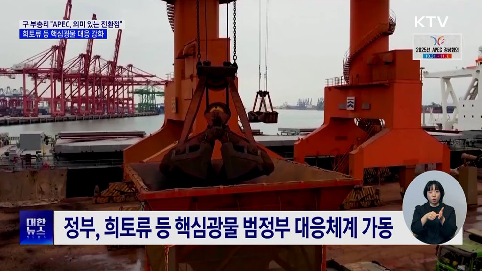김경호 앵커>정부가 이번 APEC을 통해 주요국 간 갈등이 완화됐다며 공급망 불안을 줄이는 전환점이 됐다고 평가했습니다.다만 긴장을 늦출 수 없는 만큼 핵심광물의 안정적인 확보에 나서기로 했습니다.신국진 기자입니다.신국진 기자>제6차 공급망안정화위원회(장소: 31일 정부서울청사)구윤철 경제부총리는 제6차 공급망안정화위원회를 주재하고, 경주에서 열리는 APE...