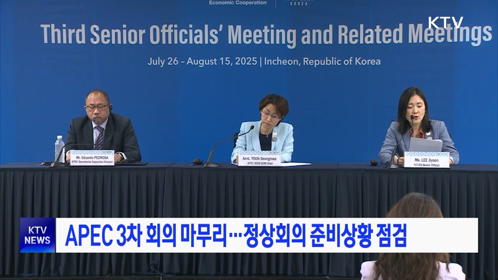 임보라 앵커>오는 10월 경북 경주에서 열리는 APEC 정상회의 준비상황을 점검하는 제3차 고위관리회의가 마무리됐습니다.10월 정상회의 주간 이전에 마지막으로 개최된 이번 3차 회의에서는 협력과제 이행현황을 최종 점검하고, 정상회의 성과 도출을 위한 최종 협의를 진행했습니다.아울러, 이번 APEC 정상회의의 핵심 의제인 'AI 협력'과 '인구구조 변화 대응...