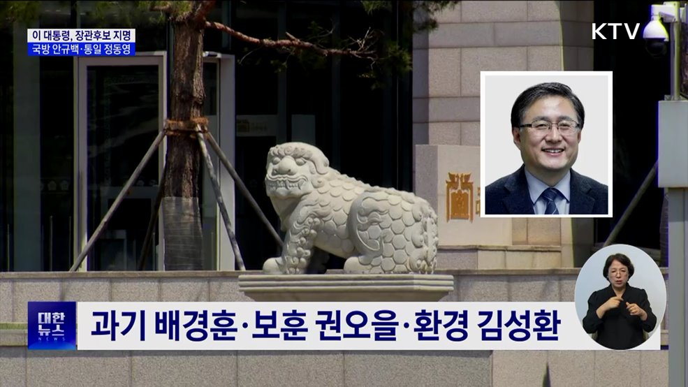김경호 앵커>이재명 대통령이 국방과 통일, 외교 등 11개 부처 장관 후보자를 지명했습니다.이 대통령은 내각이 위기에 신속히 대응할 수 있도록 인사청문 절차가 조속히 진행되길 바란다고 밝혔습니다.이혜진 기자입니다.이혜진 기자>대통령실이 초대 내각 인선안을 발표했습니다.국방부 장관 후보자로는 국회 국방위원회 간사와 위원장을 지낸 5선 안규백 의원이 지명됐습니...