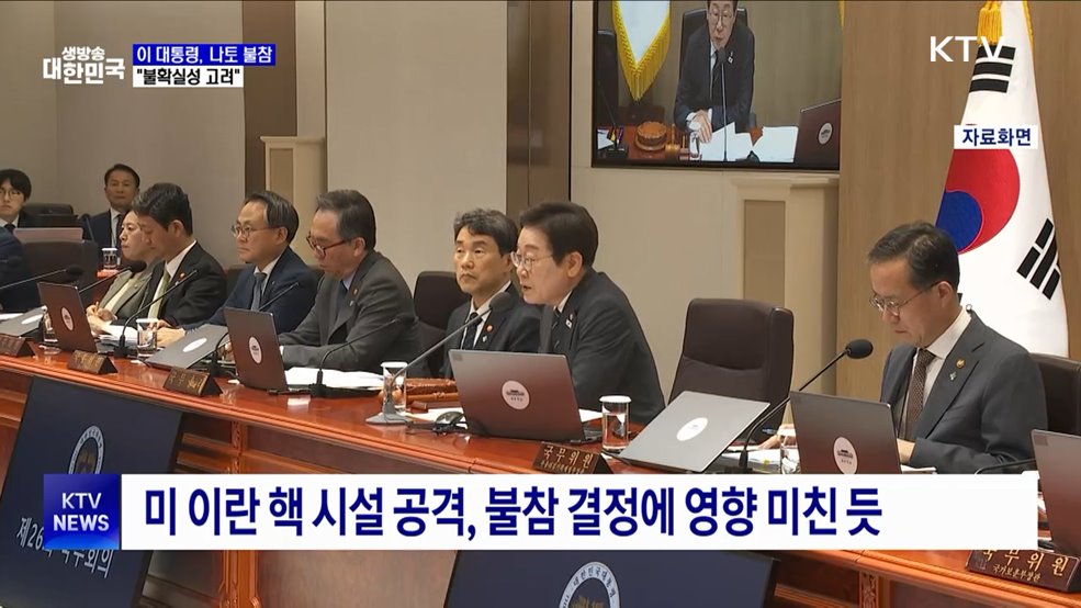 김용민 앵커>이재명 대통령이 나토(NATO·북대서양조약기구) 정상회의에 참석하지 않기로 했습니다.김현지 앵커>대통령실은 여러 국내 현안과 중동사태로 인한 불확실성을 고려했다고 설명했습니다.이혜진 기자의 보도입니다.이혜진 기자>이재명 대통령이 현지시간 24일부터 열리는 나토 정상회의에 참석하지 않기로 최종 결정했습니다.대통령실은 이 대통령이 여러 국내 현안과...