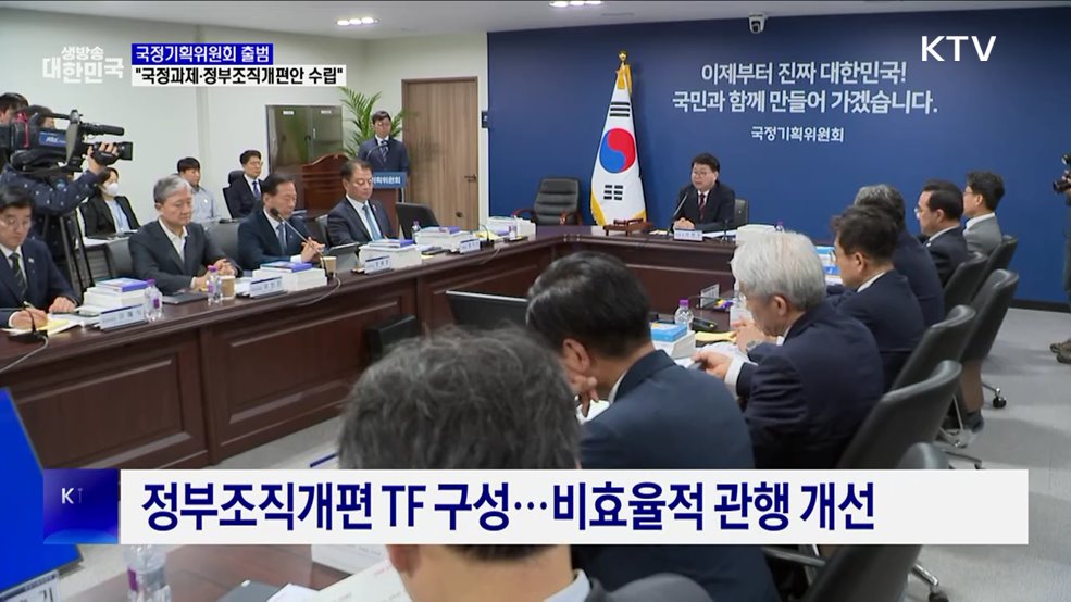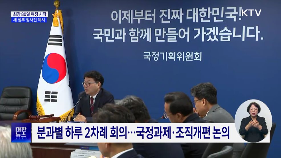 김용민 앵커>새 정부 국정운영의 청사진을 그릴 국정기획위원회가 출범했습니다.김현지 앵커>국정과제와 정부조직개편방안 등을 수립하게 됩니다.윤현석 기자의 보도입니다.윤현석 기자>국정기획위원회가 현판식을 열고 본격적인 활동에 돌입했습니다.국정기획위는 대통령직 인수위원회 없이 출범한 새 정부의 인수위 역할을 사실상 대신 맡게 됩니다.이한주 위원장은 첫 전체회의에서...