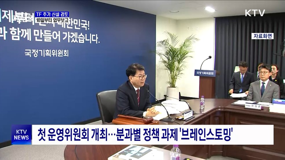 김용민 앵커>국정기획위원회가 출범 후 첫 운영위원회의를 열고 경제, 사회 주요 이슈에 대한 추가 TF 신설을 논의했습니다.김현지 앵커>오늘(18일)부터는 세종시로 이동해 부처 업무보고를 받습니다.윤현석 기자의 보도입니다.윤현석 기자>출범 후 첫 운영위원회의를 개최한 국정기획위원회.오전 8시 반부터 한 시간가량 이어진 회의에서는 분과별 정책 과제에 대한 브레...