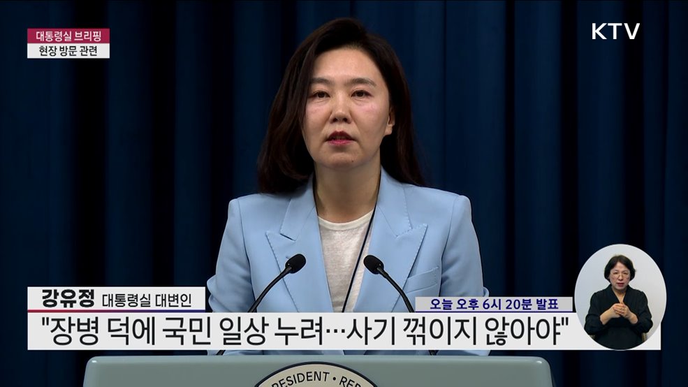 대통령실 브리핑 - 현장 방문 관련 (25. 06. 13. 18시)강유정 / 대통령실 대변인 (오늘 오후 6시 20분 발표)(장소: 대통령실 브리핑룸)