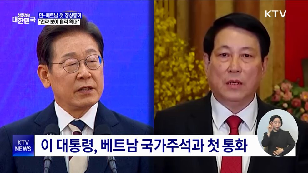임보라 앵커>이재명 대통령이 취임 후 처음으로 베트남 정상과 소통했습니다.양국 정상은 고속철도와 원전 등 전략적 분야에 대한 협력을 넓혀가자는데 의견을 함께 했습니다.최영은 기자의 보도입니다.최영은 기자>2022년, 최고 단계 파트너십인 포괄적 전략 동반자 관계를 수립한 우리나라와 베트남.이재명 대통령이 르엉 끄엉 베트남 국가 주석과 처음으로 전화 통화를 ...