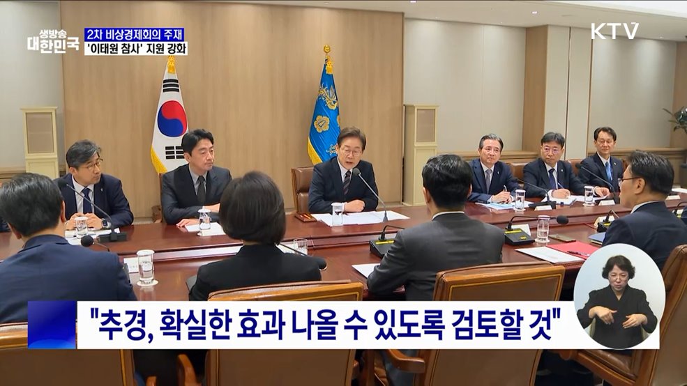 임보라 앵커>이재명 대통령이 비상경제점검TF 2차 회의를 주재하고, 경기 회복을 위해 추가경정예산안 편성을 속도감 있게 진행하라고 지시했습니다.또 이태원 참사에 대한 철저한 진상규명을 주문하는 한편 피해자들에게 아낌없는 지원을 당부했습니다.최영은 기자입니다.최영은 기자>2차 비상경제점검TF 회의 (장소: 9일, 용산 대통령실)취임 첫날 1호 명령으로 비상경...