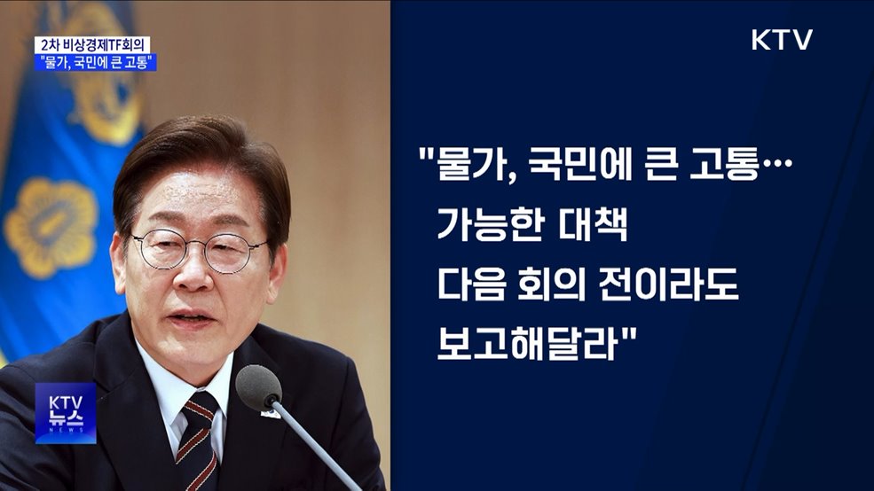김경호 앵커>이재명 대통령이 비상경제점검 2차 회의를 주재했습니다.이 대통령은 물가 문제가 국민에 큰 고통을 준다며 현황과 대책을 신속히 보고해줄 것을 강조했습니다.최영은 기자입니다.최영은 기자>2차 비상경제점검TF 회의 (장소: 용산 대통령실)이재명 대통령이 용산 대통령실에서 비상경제점검TF 두번째 회의를 주재했습니다.취임 첫날 1호 명령으로 비상경제점검...