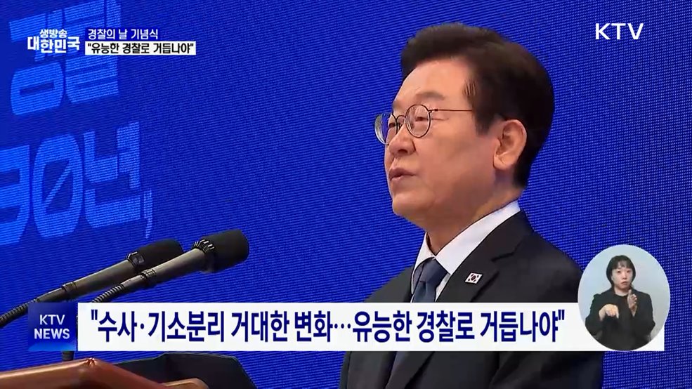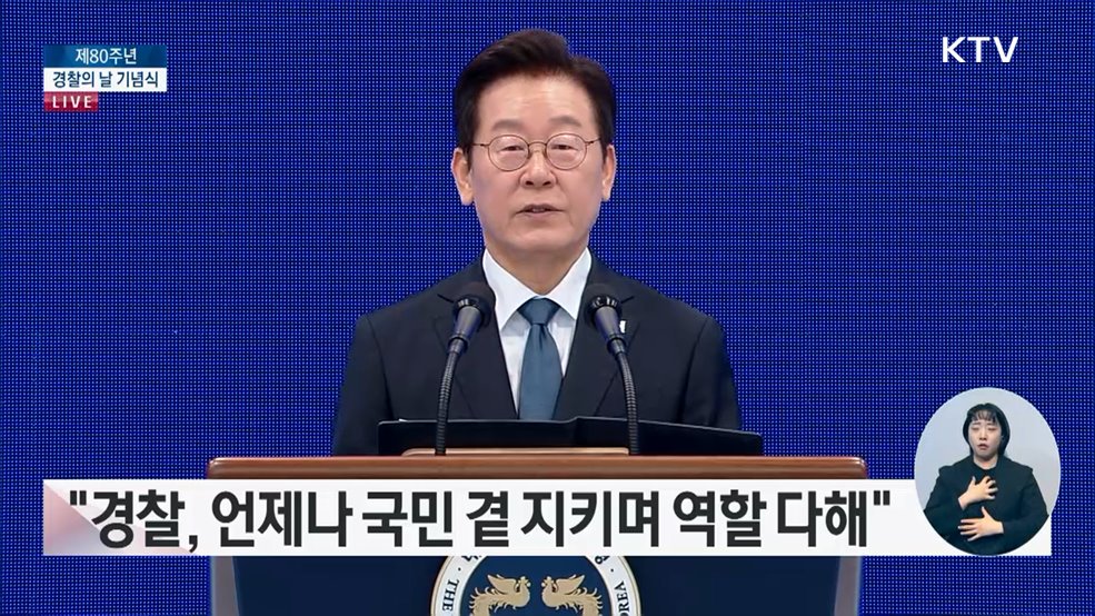 임보라 앵커>이재명 대통령이 제80주년 경찰의 날 기념식에 참석했습니다.이 대통령은 경찰의 권한이 늘어나는 거대한 변화를 앞두고 있다며 유능한 민생 경찰, 민주 경찰로 거듭나야 할 거라고 강조했습니다.최영은 기자입니다.최영은 기자>제80주년 경찰의 날 기념식(장소: 21일, 경찰청 (서울 서대문구))경찰청에서 열린 80주년 경찰의날 기념식.이재명 대통령이 ...