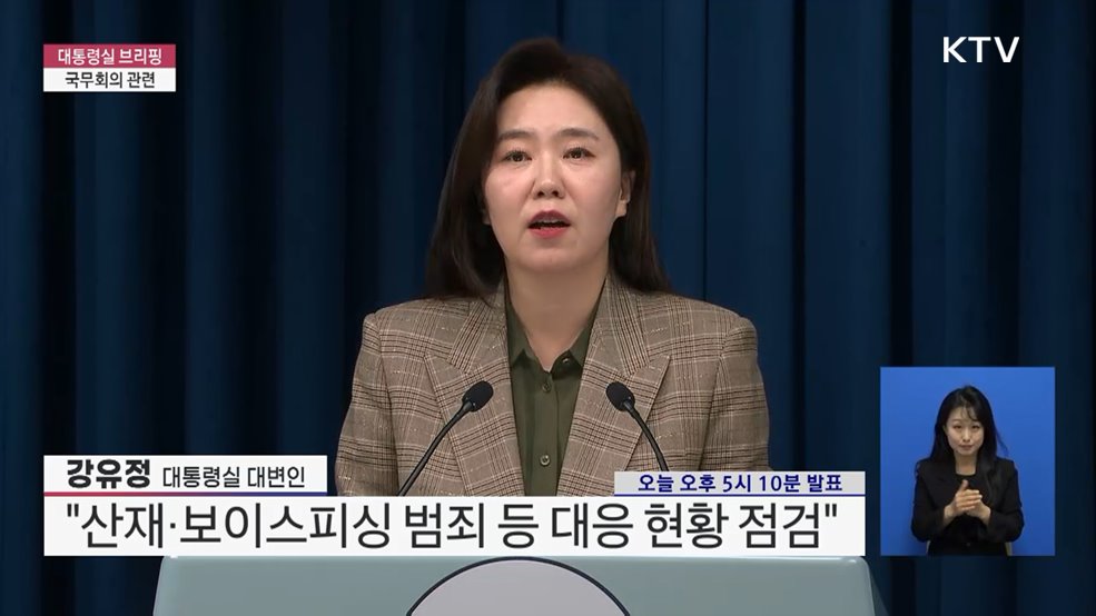 대통령실 브리핑 - 국무회의 관련강유정 / 대통령실 대변인 (오늘 오후 5시 10분 발표)(장소: 대통령실 브리핑룸)