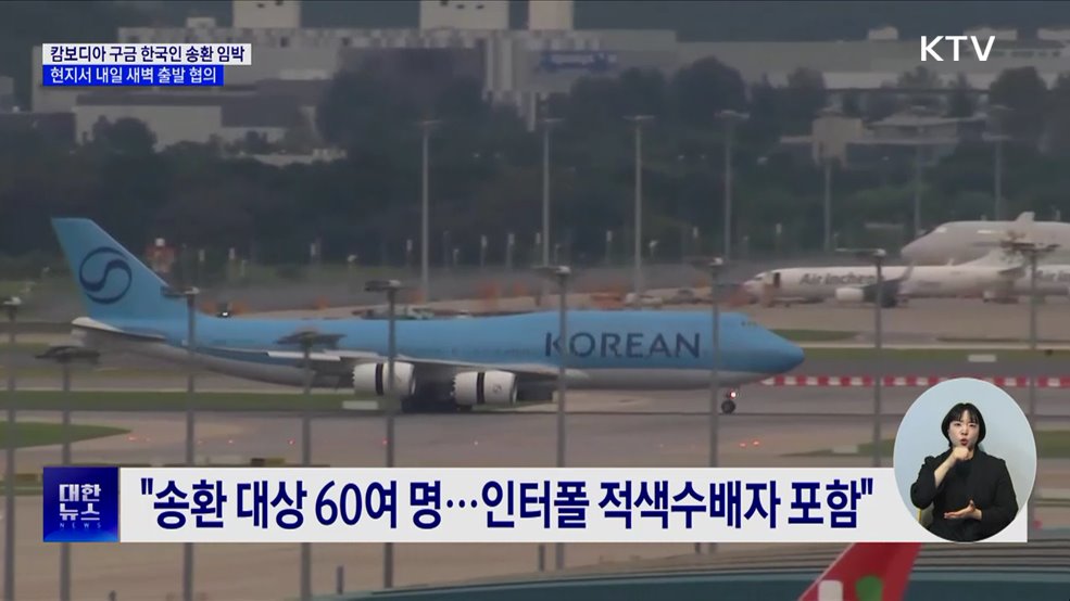 김경호 앵커>캄보디아에 구금된 한국인들이 전세기를 통해 내일 인천공항에 도착할 것으로 보입니다.대통령실은 현지에 급파된 정부 합동대응팀이 캄보디아 측과 막판 세부 사항을 조율하고 있다고 밝혔습니다.최영은 기자입니다.최영은 기자>캄보디아 현지에서 온라인 사기, 스캠 범죄에 연루돼 구금 중인 한국인들의 국내 송환이 임박했습니다.대통령실은 이들을 태운 전세기가 ...