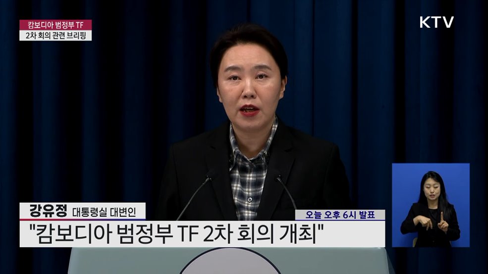 캄보디아 범정부 TF - 2차 회의 관련 브리핑강유정 / 대통령실 대변인 (오늘 오후 6시 발표)(장소: 대통령실 브리핑룸)