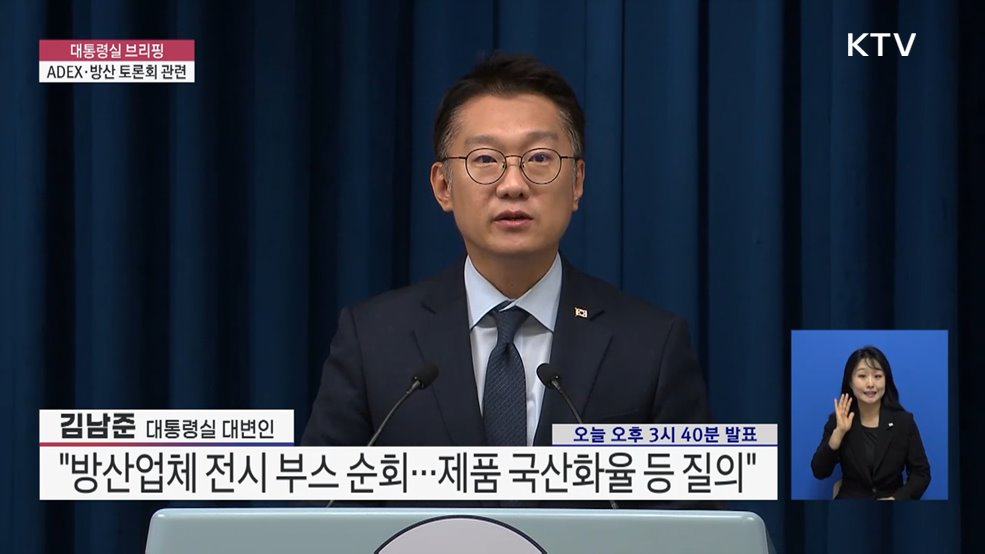 대통령실 브리핑 - ADEX·방산 토론회 관련김남준 / 대통령실 대변인 (오늘 오후 3시 40분 발표)(장소: 대통령실 브리핑룸)