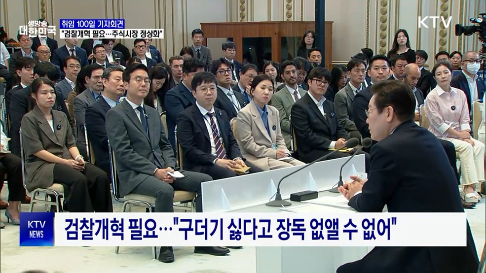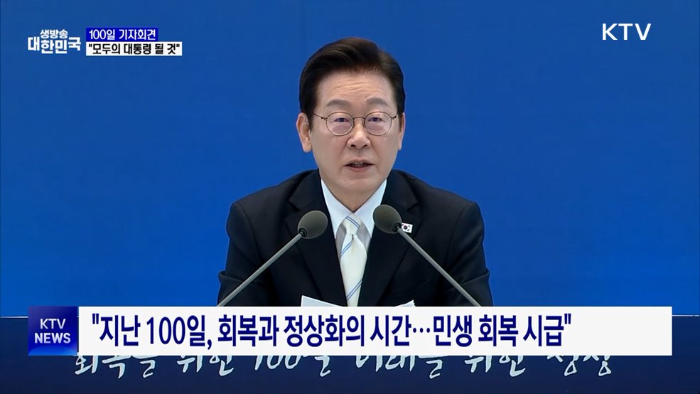 김용민 앵커>이재명 대통령이 취임 100일을 맞아 기자회견을 열어 국정 현안에 대한 생각을 상세히 밝혔습니다.통합의 정치로 국정을 이어가겠다는 의지를 밝혔습니다.김현지 앵커>지난 100일이 회복과 정상화의 시간이었다며 남은 4년 9개월은 도약과 성장에 힘을 쏟아붓겠다고 선언했는데요.서울 스튜디오 연결해 자세한 내용 살펴봅니다.차현주 앵커!차현주 앵커>네, ...