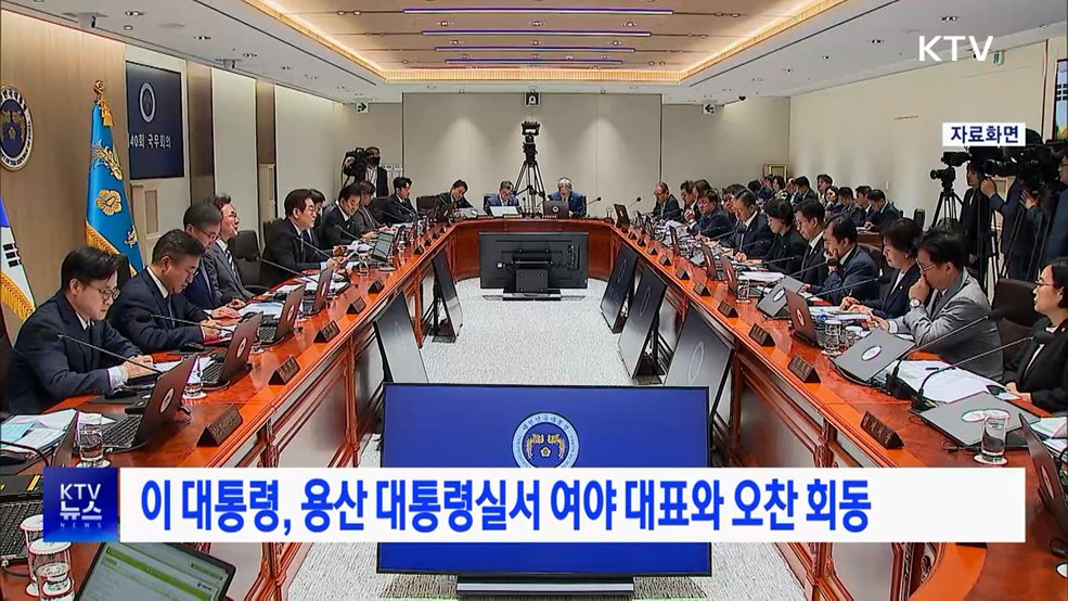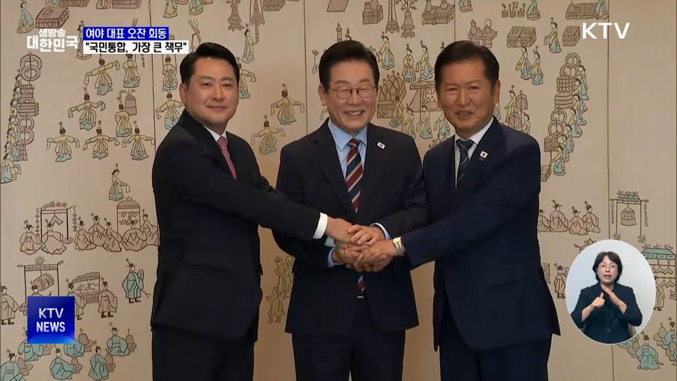 임보라 앵커>이재명 대통령이 여야 대표와 오찬을 겸한 회동을 했습니다.이 대통령은 국민 통합이 대통령의 가장 큰 책무라며 여야 공통 공약은 과감히 시행해보자고 제안했습니다.이혜진 기자의 보도입니다.이혜진 기자>여야 대표 오찬 회동(장소: 8일, 용산 대통령실)조선시대 궁중 연회를 그린 기록화, 진연도를 배경으로 이재명 대통령과 더불어민주당 정청래 대표, 국...