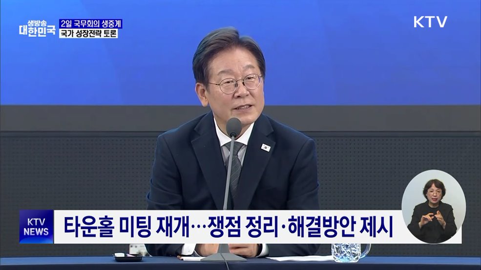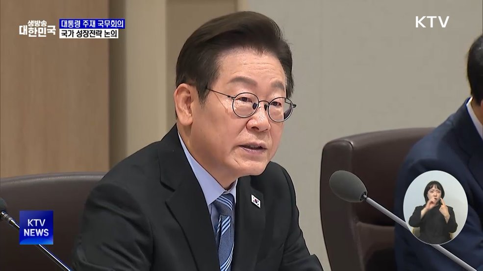 임보라 앵커>이재명 대통령이 국무회의를 열어 국무위원들과 국가 성장전략을 논의했습니다.이번 국무회의는 실시간 생중계로, 국민 앞에 공개됐는데요.이 대통령은 잠재성장률 하락세를 반전시킬 첫 정부가 돼야 한다며 신기술 혁신과 산업 재편을 포괄할 종합 대책 추진을 지시했습니다.국무회의 소식, 이혜진 기자가 전해드립니다.이혜진 기자>(제40회 국무회의)국가 성장전...