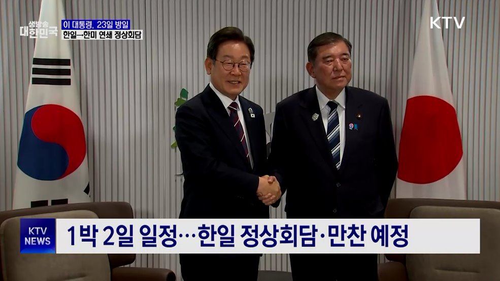 김용민 앵커>이재명 대통령이 오는 23일, 1박 2일 일정으로 일본을 방문해 이시바 시게루 일본 총리와 정상회담을 합니다.김현지 앵커>25일엔 미국 백악관에서 한미 정상회담 개최가 예정된 만큼, 한미일 협력을 더욱 공고히 하는 계기가 될 것으로 보입니다.최영은 기자입니다.최영은 기자>이재명 대통령이 미국 트럼프 대통령과의 첫 정상회담에 앞서 일본을 방문합니...